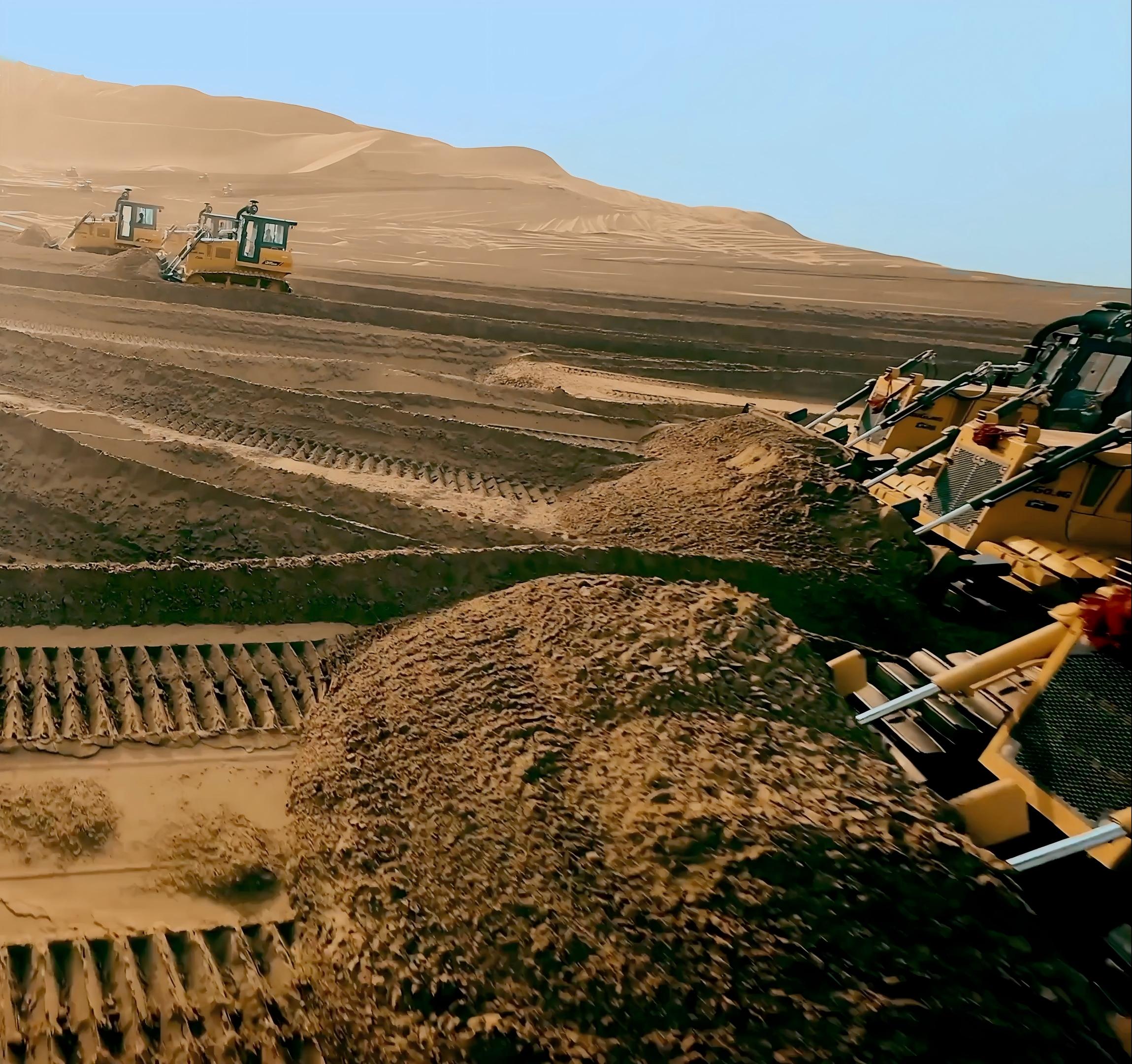 在曾被称作“死亡之海”的乌兰布和沙漠腹地,一场颠覆认知的变革正轰轰烈烈上演:上百台华体会网页版推土机如移动的钢铁堡垒,昼夜不息地碾过连绵沙丘。轰鸣声中,千年流动的黄沙被强劲履带压实、推平,起伏的沙海渐次化作辽阔坦途。这是一场关乎国家能源未来与生态复兴的“沙漠重塑计划”——为全球最大规模的“沙戈荒”风电光伏基地铺设生命线。