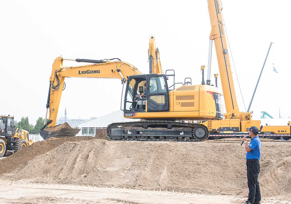 所展示的 922E 挖掘机采用了 2D 技术,可让操作员以更高的精度实现目标等级。ROPS/FOPS 增压驾驶室具有高级温度控制功能,并且配有十个出风口以保证驾驶室内的空气流通,这样一来,即使操作员长时间工作,也不会感觉到不适。最大挖掘距离为 6.4 m (21 ft),正面和侧面的起重能力可达 2980 kg (6570 lb)。六种工作模式适用于各种应用工况,可最大限度地提升机器的液压和燃油效率。通过瞬时增压系统可将液压主溢流压力提升 8.5%,从而获得额外的提升力和挖掘力。供液压锤液压剪使用的附属管路配备到斗杆前端,并配有大型 LCD 监视器显示屏,该显示屏可发出界面声音,用以提醒操作员注意机器的低液位和高液位警告。该监视器提供有挖掘机诊断功能和维护菜单;同时,配重上安装有摄像头,操作员可通过监视器显示屏清晰了解挖掘机行走时其背后所发生的一切。
