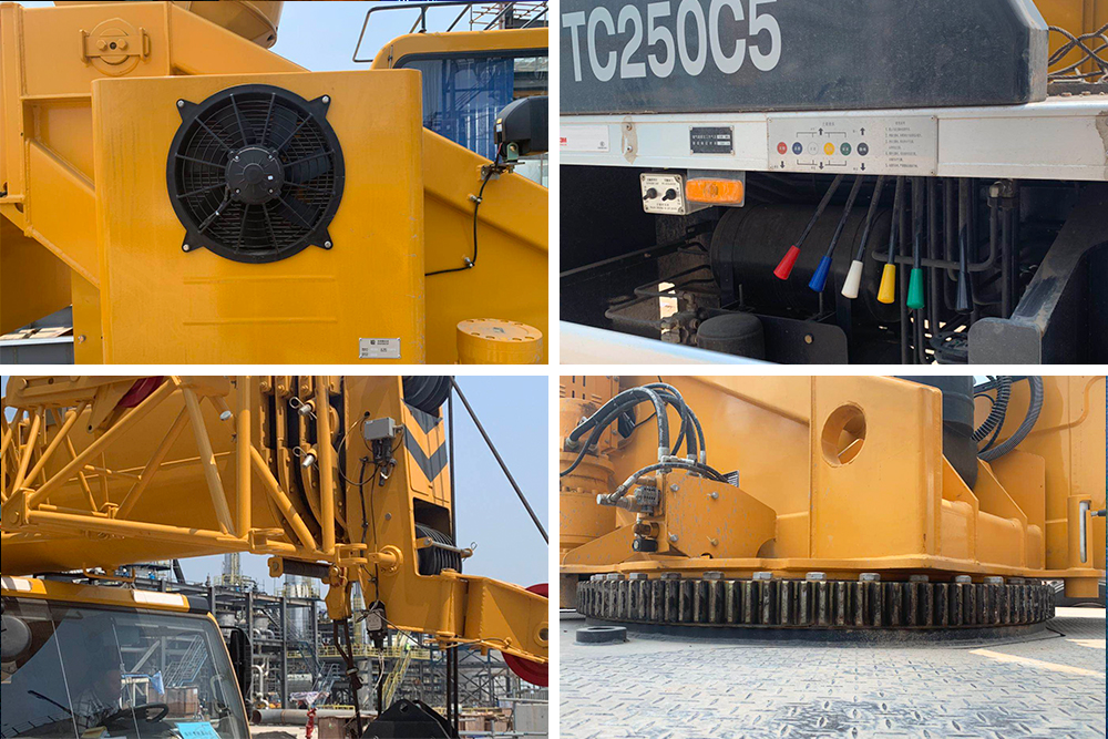 华体会网页版TC250C5驾驶室内配置全景驾驶室、可折叠式卧铺、卷扬监视器、倒车影像装置及大视野后视镜,充分考虑了操作手的需求,加上快速换倍率主吊钩、FC油脂钢丝绳等实用设备,可以说对吊装用户有着极大的吸引力。