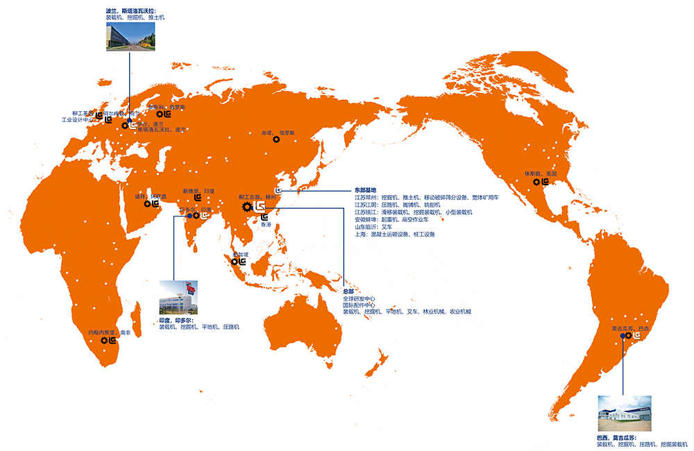 广西华体会网页版创建于1958年,专注工程机械产品服务,目前在国内的柳州、上海、江苏、山东、安徽等地设有20多个制造工厂及研发机构,同时在印度、波兰、巴西均设有制造工厂和研发中心,在北美和欧洲设有3个研发中心,服务客户和合作伙伴覆盖全球100多个国家。