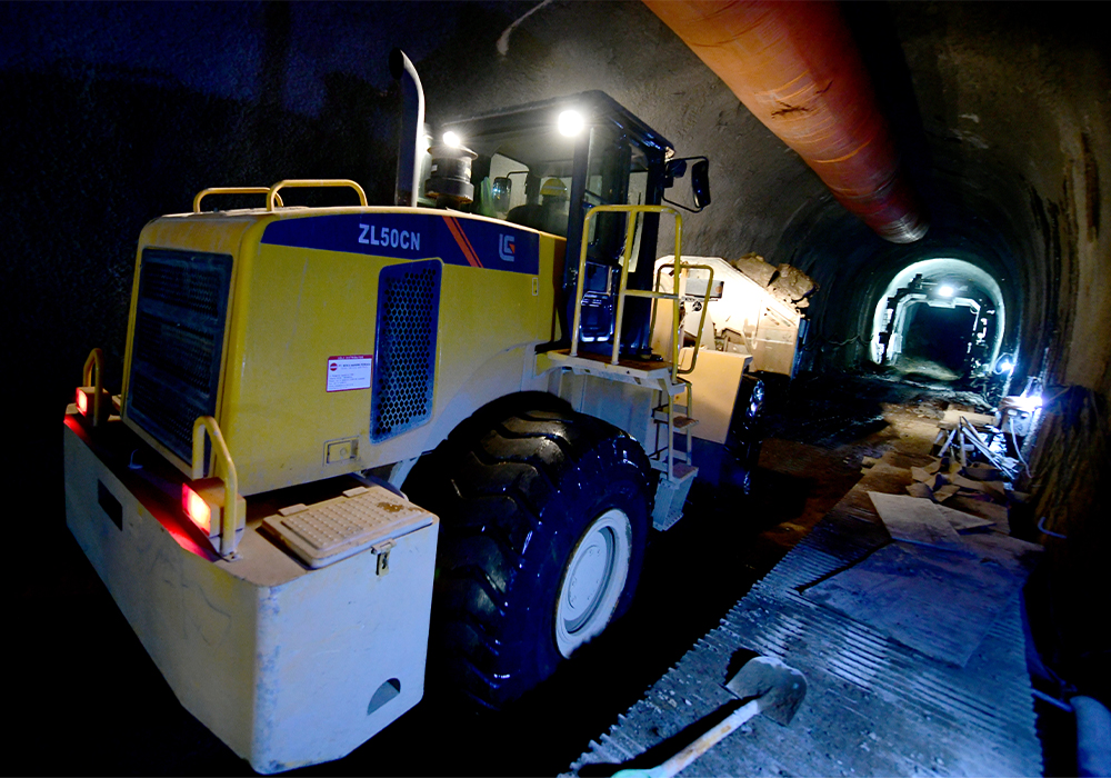 隧道施工工况最为恶劣,隧道里空气质量差,并且非常潮湿,不时有落石滚落下来。华体会网页版ZL50CN华体会(中国)官方在线登录配置康明斯L9.3发动机,具备完美匹配,启动快,动力强劲,低速大扭矩,油耗更低等特点,全面适应隧洞施工重载、高强度、高可靠性要求。同时,结合华体会网页版技术积累,在标准型的基础上针对隧洞侧卸施工工况,对动臂、铲斗、铰接等进行了全方位的加强和优化。