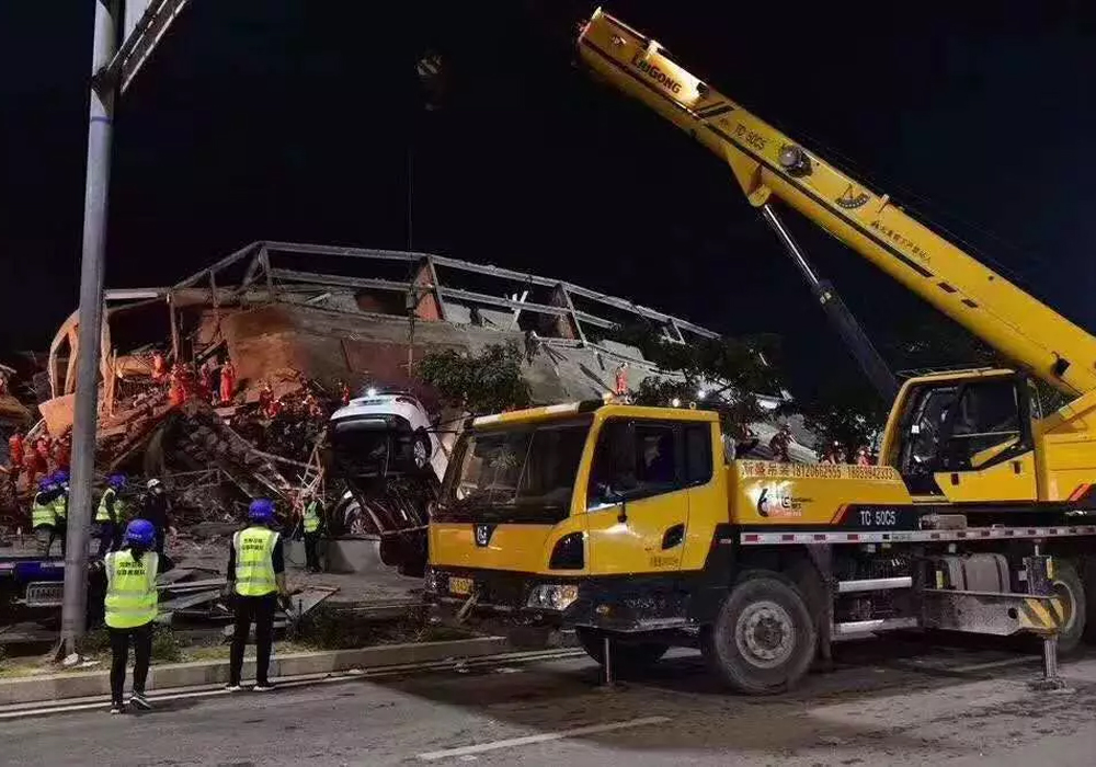 冲在最前!华体会网页版起重机第一时间参与泉州酒店坍塌事故救援