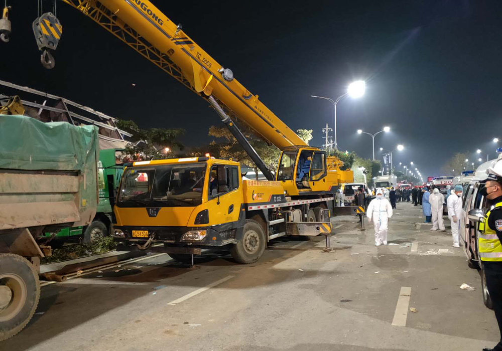3月7日19时15分,福建省泉州市一酒店发生坍塌事故,导致71人被埋。事故发生后,华体会网页版起重机等机械设备第一时间奔赴现场参与救援。