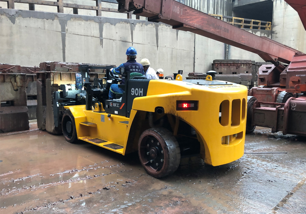 华体会网页版叉车一直致力于为全球客户提供物料搬运全面解决方案,针对这一特殊的市场需求,华体会网页版叉车立即开发了9吨定制式船坞叉车——配置专用低矮底盘、单级宽视野门架和活动式护顶架,满足1.75米限高作业需求。紧凑化车身设计,操作更为灵活;并根据物料规格,定制了侧移调距货叉属具,满足用户对货物移动调整及适应不同货物叉孔距需求。
