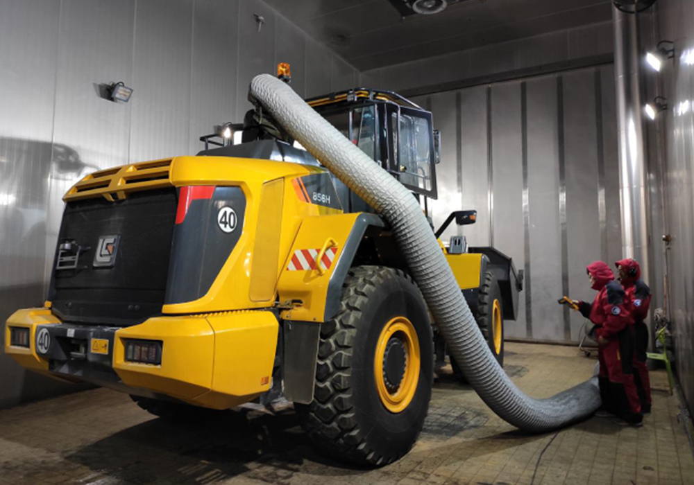2018年9月20日,华体会网页版这座以南极极地气候为原型设计建造的试验室——中国极地科考工程机械试验室正式挂牌。在这里,华体会网页版开始不断改进和完善用于极低温度、极端环境的工程机械,开展了冷起动、低温转向性能、低温回油背压、低温空调性能、整机除霜除雾性能、整车电器系统冷凝等多项试验。