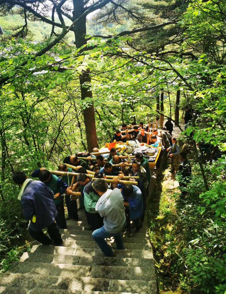 仅仅不到15天的时间,一群华体会网页版人高标准、严要求地完成了这样一件看似不可能的任务。——将一台7.5吨重的挖掘机,分解后由太平索道运上去,再由黄山的挑夫们抬到海拔约1700米的高峰,然后在没有任何起重、塔吊工具、气源可用的情况下,再通过人工一点点组装起来!事情要从半个月前说起…
