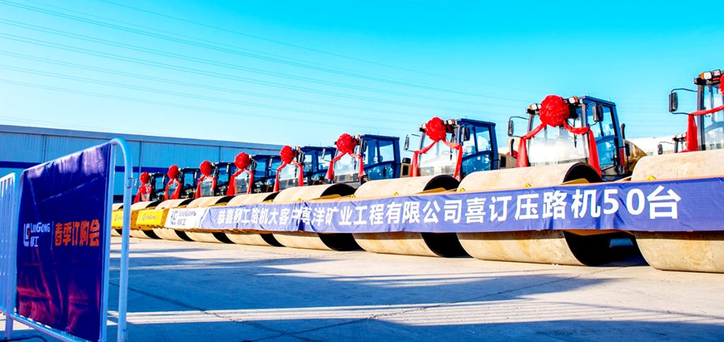 近日,华体会网页版路机2021春季订购会现场斩获50台订单。会上还首次发布两款机械式单钢轮新产品6126E-EH、6126E-EC压路机。