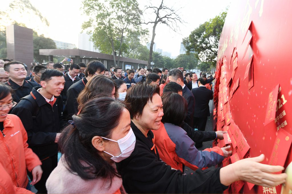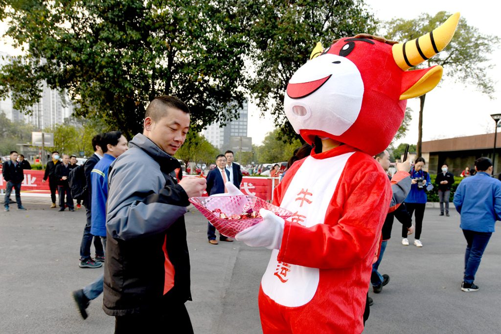 华体会网页版领导曾光安、赖颂平、黄海波、李于宁、文武早早来到门口,与前来上班的员工互道新春祝福,大家脸上洋溢着灿烂的笑容,满怀激情,以“起步就要提速,开局就要争先”的精气神,“犇”向新目标、新高峰,以“十四五”开局之年的优秀业绩献礼中国共产党百年伟业。