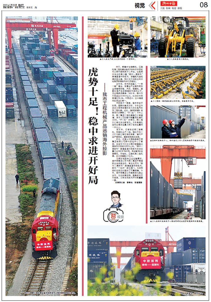 《柳州日报》整版聚焦华体会网页版产品远销海外掠影。今年以来,华体会网页版海外订单增长显著,其中1月份海外销量同比增长103%。“开门红”的背后,华体会网页版海外订单也发生了新变化,高端机型的出海发运量占到了总发运量的一半。