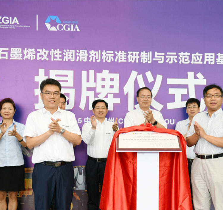 5 月31 日上午,由中国石墨烯产业技术创新战略联盟与股份公司共建的“石墨烯改性润滑剂标准研制与示范应用基地”揭牌仪式在公司全球研发中心圆满举行。柳州市副市长王伟、集团公司副总裁黄建兵、中国石墨烯产业技术创新战略联盟秘书长李义春出席仪式并致辞。中国计量科学研究院、柳州市工信委、柳州市科技局领导,以及全国石墨烯行业科研、制备、应用、检测认证、知识产权等相关机构专家50余人参加了本次活动。