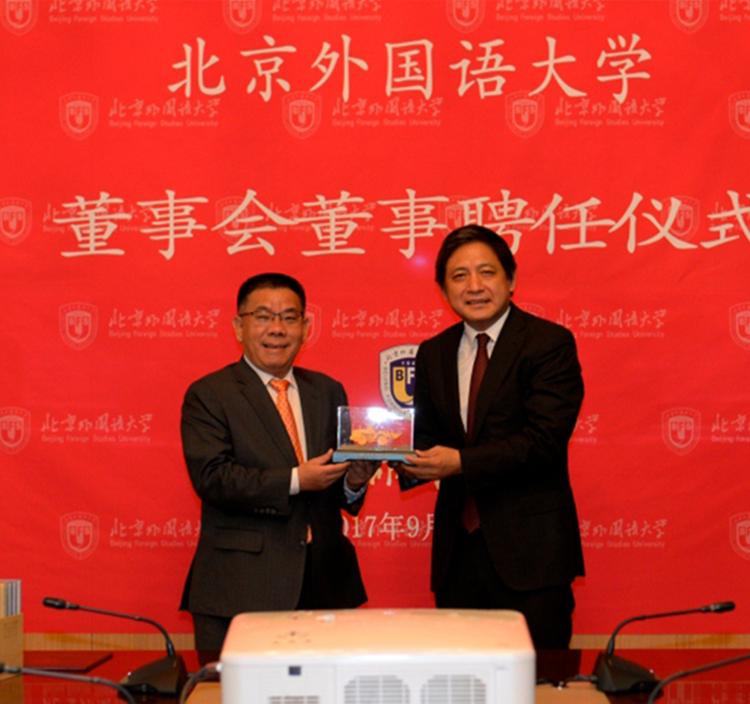 曾光安董事长受聘为北京外国语大学校董事会董事。并在2017年新生开学典礼上致辞。未来,双方将在人才培养、国际事务、国别和区域问题研究等领域建立全面密切的合作关系。这将为华体会网页版全面国际化的进一步发展提供强有力的支持。