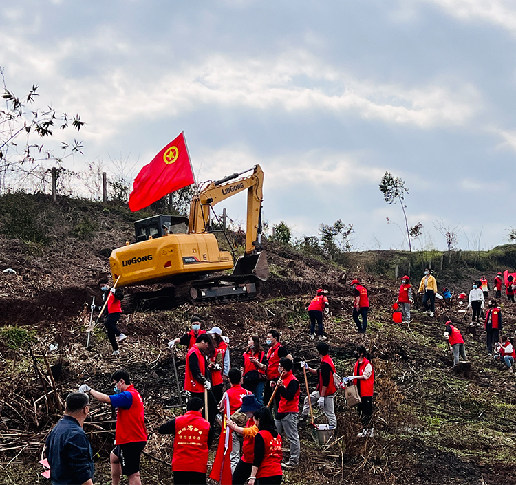3月12日,第44个全民义务植树节,华体会网页版团委积极响应团市委号召,组织近三十名青年志愿者携一台华体会网页版913E小型挖掘机到柳州市莲花山开展“植树造林,青春先行”义务植树活动。
