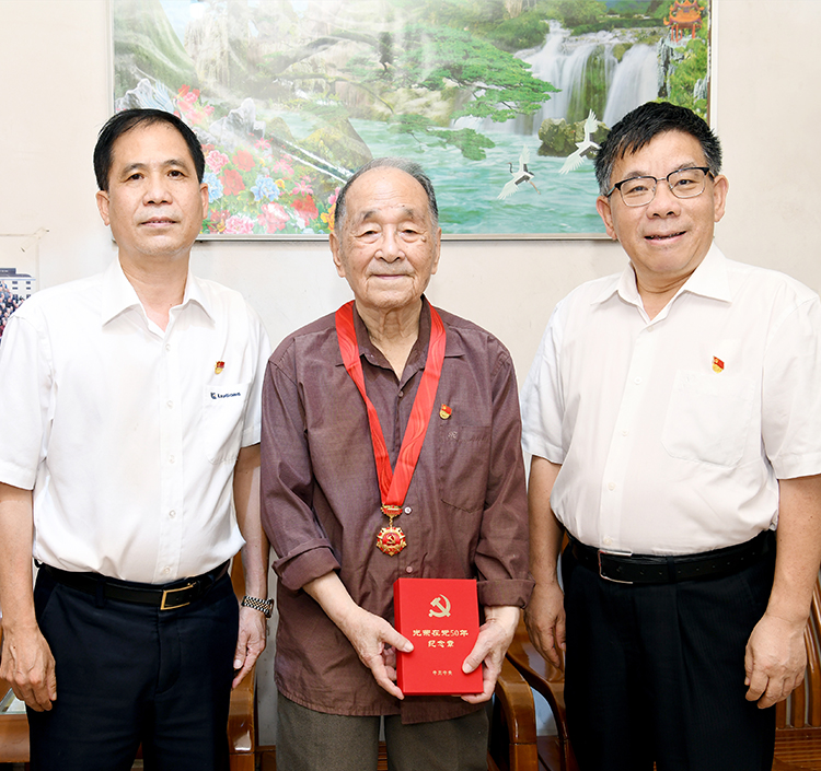 6月24日下午,华体会网页版有限党委书记、董事长曾光安,华体会网页版有限党委副书记、纪委书记、工会主席李于宁一行,走访慰问了90多岁高龄、70余年党龄的公司退休老党员谢文光、李常芳,为他们送上“光荣在党50年”纪念章。